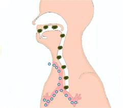 Prebavna pot je pravzaprav ostala ista, medtem ko je dihalna po operaciji skrajšala in njen potek spremenjen. Namesto skozi nos ali usta diha laringektomirani skozi odprtino na vratu, traheostomo. Zrak pri bolniku, ki so mu odstranili grlo, ne potuje več skozi nos, zato ni ogret niti ovlažen in ne očiščen, kar vse je naloga sluznice nosnih votlin. Bolnik vdihava neposredno v sapnik največkrat presuh, prevlažen, premrzel ali prevroč in onesnažen zrak, pač odvisno od temperature, vlage in ekoloških pogojev v okolici bivanja. Na neugodne okoliščine se sluznica odziva s povečanim izločanjem sluzi, ki lahko ob slabi negi razmehča kožo ob odprtini na vratu. Razmehčana koža je zelo dovzetna za okužbo, zato moramo dihalni odprtini posvetiti posebno skrb.