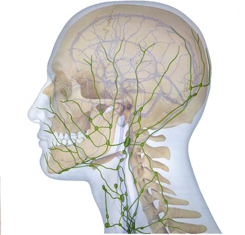 Delovanje žrela je večnamensko. Sodeluje pri požiranju, dihanju in deloma pri govoru. V njem se križata dihalna (nos-žrelo-grlo) in prebavna (usta-žrelo-požiralnik) pot (sI. 6). V njegovi steni je zelo veliko majhnih in šest večjih, po sestavi bezgavkam podobnih tvorb, tako imenovanih mandeljnov (žrelnica, dve nebnici, jezični mandelj in mandlja ob ustju ušesne troblje), ki so medsebojno povezane z mezgovnicami (limfnimi žilami). Delovanje bezgavk, ki so na vratu zelo številne, je prav pri rakavih boleznih še posebej pomembno. Bezgavke namreč prestrezajo najrazličnejše bolezenske klice, vnetne in rakave celice ter tako vsaj delno preprečujejo njihov razsev po telesu. Povečane bezgavke na vratu opozarjajo na bolezen v predelu glave in vratu, velikokrat na maligno tvorbo (sI. 7). Če opazimo ali začutimo povečane bezgavke na vratu, ne odlašajmos pregledom pri zdravniku.
