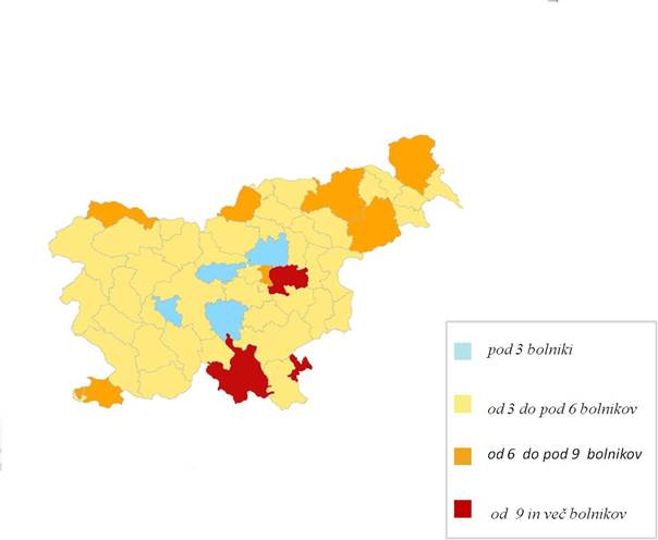 Slika 1. grafikon pogostost raka po upravnih enotah v Sloveniji