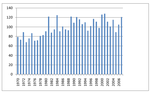 Leta 1961 je bil v Sloveniji ugotovljen rak grla pri 42 moških in 2 ženskah, leta 1981 že pri 104 moških in 8 ženskah, leta 1992 pri 105 moških in 10 ženskah ter leta 1997 pri 102 moških in 9 ženskah.